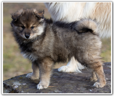 When our fantastic Ippo's dam Lumivaara, whose roots are in Nenets' reindeer herding dogs, was bred a second time, I kept my fingers crossed for nine weeks straight, hoping there was a bitch puppy for me this time – and sure enough, there was. Nessi lives at Muhos with another Lappie bitch and is co-owned by Emma Penttinen, who has a long experience with the breed. Nessi will be leading an active, outdoorsy life as the hiking buddy of Emma and her partner, and I am sure we will come up with some other activities as well. Thank you for this opportunity!