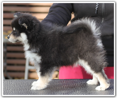 Rasmuksen tytär Helli oli tarkoitus joko sijoittaa tai pitää itsellä. Näiden kahden vaihtoehdon välillä jahkaillessani en tullut sitä kenellekään sijoitukseen tarjonneeksi, joten vaivihkaa siitä tuli lauman kolmas jäsen: isänemänemänsä Vuokon mieliharmi ja pikkuserkkunsa Sallin painikaveri. Helli on mutkaton ja tasapainoinen pentu, joka oppii asioita hyvin nopeasti. Toistaiseksi takana on vasta pentukurssi ja hiukan näyttelytottumusta, mutta ajatuksissa on kokeilla ainakin paimennusta ja noseworkia. Kiitos, Tapio, taas yhdestä jäkäläkumpulaisesta! >> Kuvagalleria >> Helli KoiraNetissä |