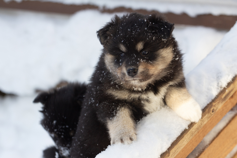 Nuttu's puppies were born on 9 Jan and have already moved to their new homes. The only male, Nuuk, moved to Parainen to follow in Nasti's footsteps, while Huisku lives at Tyrnävä and Noki at Kiiminki (she is owned by kennel Pippurimuorin, but lives as a family pet with another Lappie). Nasta joined my team of co-owned dogs and resides at Paimio in the same household as her dam.