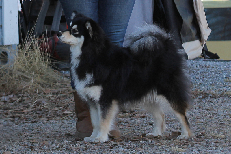 Muutama näyttelytuloskin on tälle vuodelle ehtinyt jo kertyä: Kajaanin kv-näyttelystä 10.1. tuli Vapulle valioluokasta ERI Sanna Kavénin arvostellessa. Kuopion perinteisillä Jalostuspäivillä 25.1. kehässä esiintyivät Havu (vasen kuva), Helli (oikea kuva) ja Armi. Parhaasta menestyksestä vastasi Havu tuloksella JUN ERI2 SA JUN-SERT. Hellille ei tullut sijoitusta valtavassa pikkupentuluokassa, kun taas Armi nousi yllättävänkin korkealle luokassaan (NUO EH3) siihen nähden, kuinka vähän sillä oli turkkia. Tuomareina toimivat lappalaiskoirakasvattajat Christian Lauluten (urokset) ja Pinja Hiltunen (nartut).